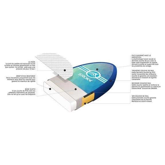 Avec l’Alpha Fusion Sroka vous pourrez choisir: partir en mode exploration ou pousser le cardio!La planche de SUP Alpha est construite avec la technologie Fusion qui permet de gagner 20% en poids par rapport à une planche similaire dont les couches sont assemblées avec de la colle. Son épaisseur de 6 », en plus de sa construction permet d’avoir un SUP très rigide.