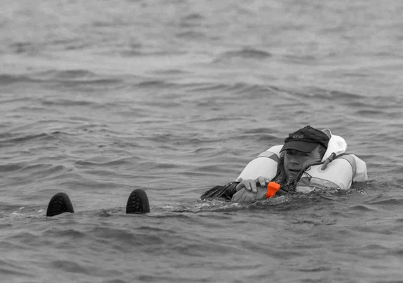 Il faut faire des efforts importants pour se maintenir à la surface alors que l’épuisement vient vite et que l’hypothermie commence lorsque la température du corps est inférieure à 35°C.