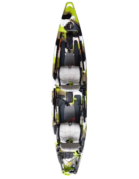 Le nouveau Lure II Tandem V2 est notre nouveau complément passionnant à la série de kayaks Lure. Basé sur le même confort incroyable, la stabilité et la polyvalence que les pêcheurs exigent d’un kayak – maintenant pour 2! Avec 2 cockpits complets équipés de Sonar-Pods, d’une plate-forme pour se lever et du sièges Gravity brevetés. Le Lure 2 ne coupe aucun angle pour offrir le meilleur à deux pêcheurs. Poignées moulé dans la coque, roue dans la quille, le stockage arrière pour le Crate Fishing Bag ou le Cooler, le système d’Uni-Track, les supports arrière pour cannes à pêche sont toutes les dispositifs standard. De plus – vous pouvez ajouter le système de pédales Overdrive et / ou le moteur à la position assise arrière – tout en utilisant le pod sonar avant pour la profondeur / fish finder – vous avez maintenant une machine de pêche sérieuse.Le Lure II est également conçu comme un kayak solo de la position de siège arrière – avec une multitude d’options. En position solo – vous pouvez retirer le siège Gravity avant – offrant encore plus de place pour la station debout et le rangement , Le Lure Tandem II Overdrive Pédales Système est équipé de 1 Overdrive sans le moteur.