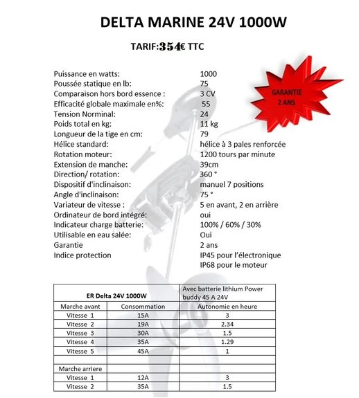 ER Delta 24V 1000W avec en option la batterie Power Buddy 24V 45AH
