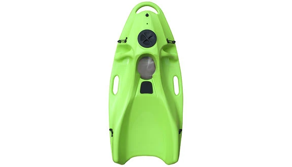 Ergonomique: le nageur est confortablement positionné pour explorer le monde sous-marin à l’aide de la lentille optique.